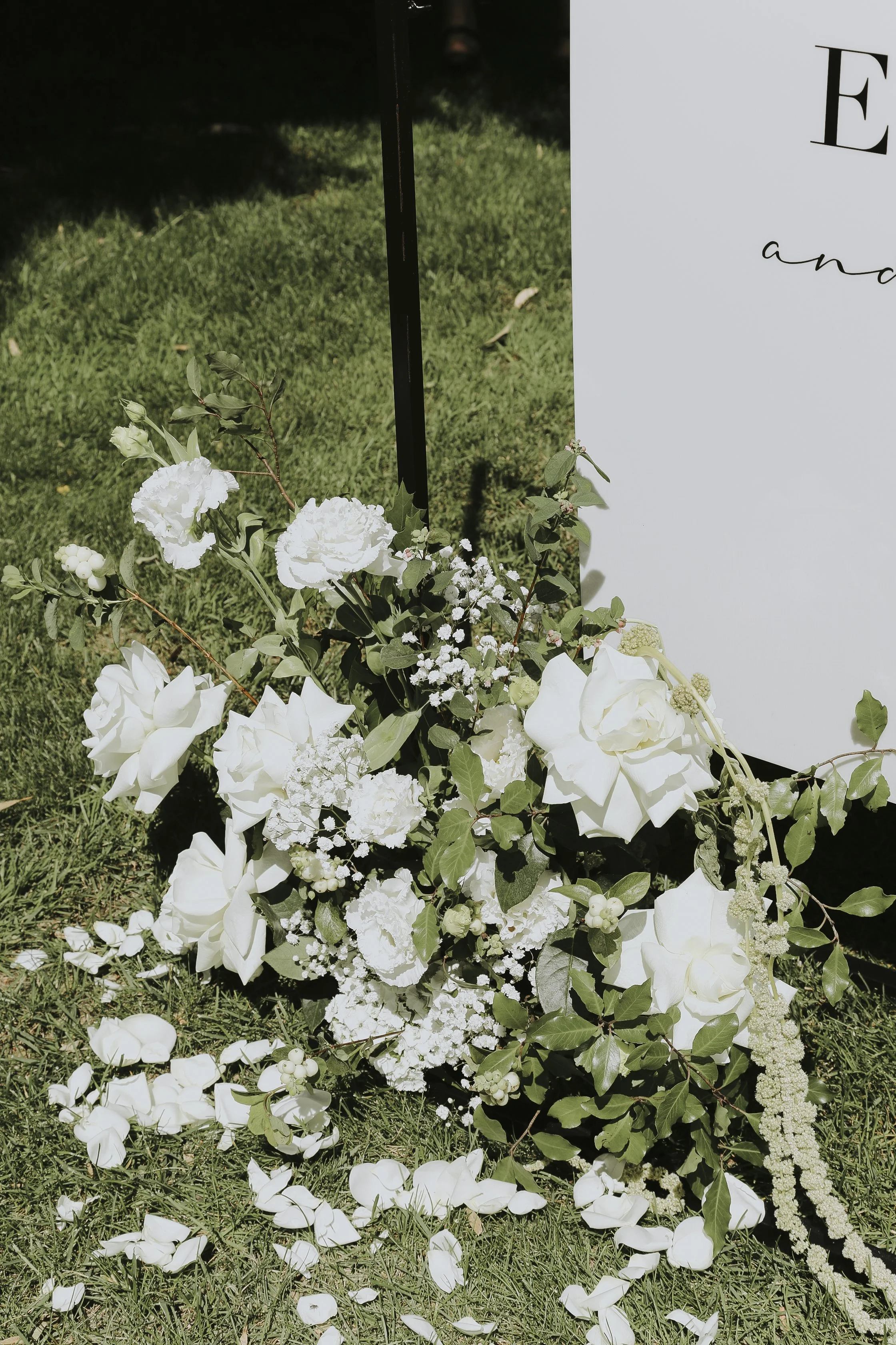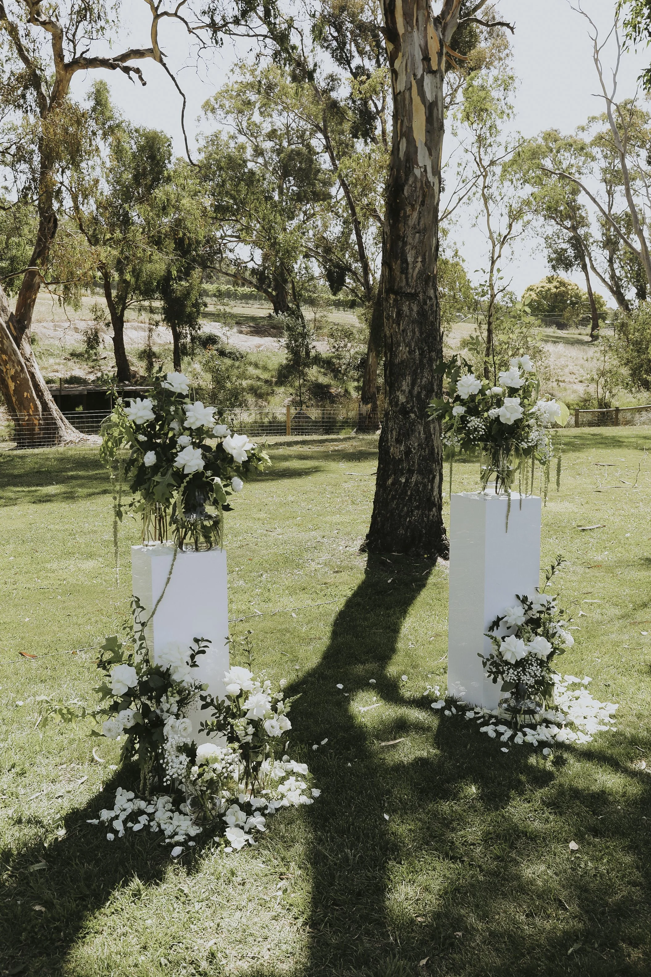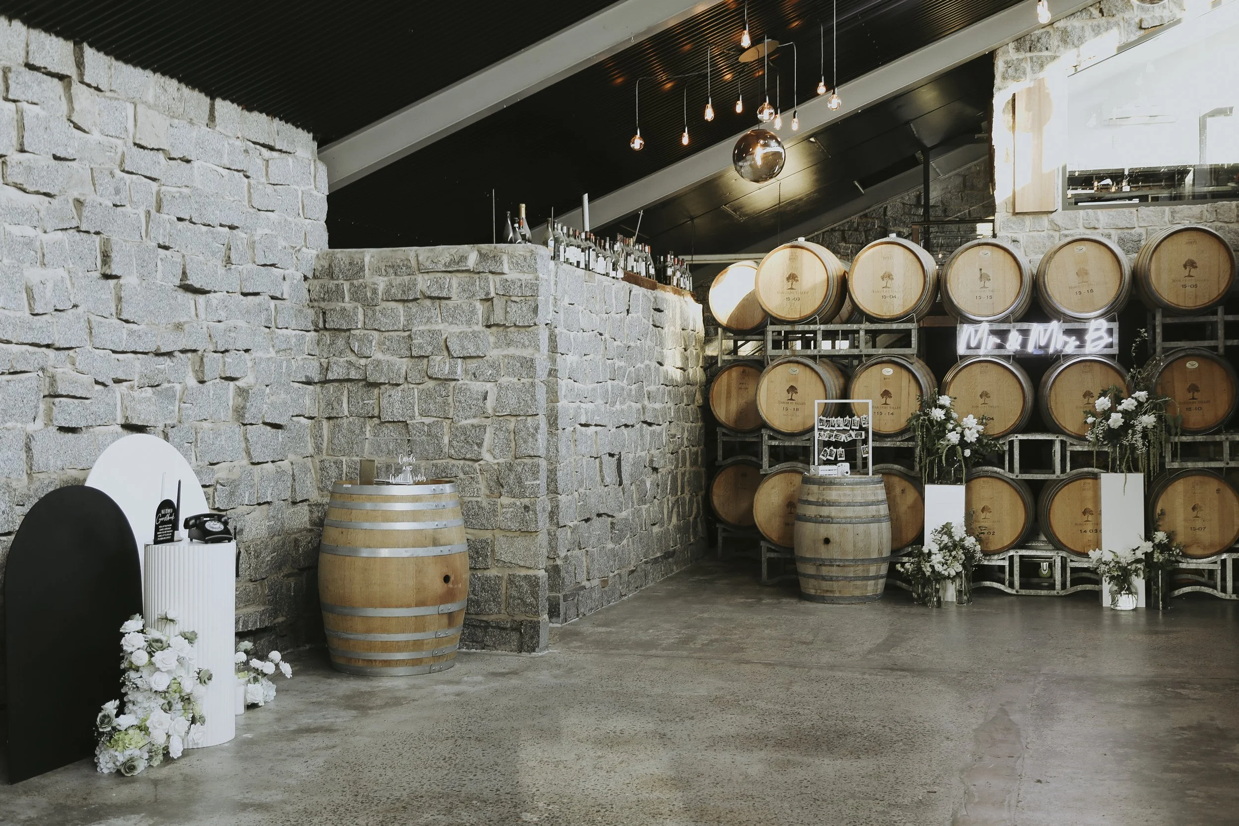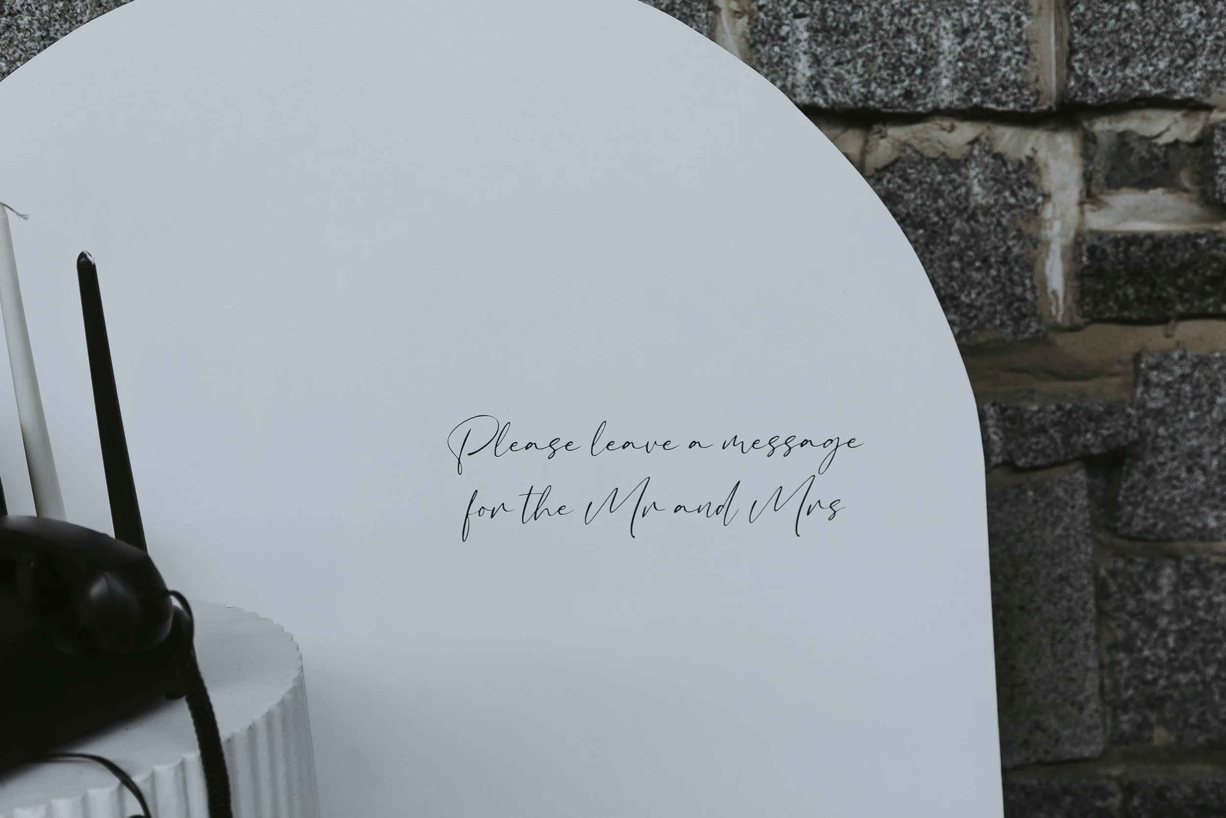Ebony & MickEb and Mick celebrated their wedding day amidst the picturesque surroundings of Harcourt Valley Winery. It was a joy to capture every moment of their day as their photographer, ensuring their memories were beautifully captured. The hire items really complemented the venues colours and textures, we opted for an Audio Guestbook Arch Duo to hold their phone which blending seamlessly in the space. We also provided a welcome sign, stand, bar sign, and wishing well, all designed to enhance the monochrome style with a touch of green to their special day.