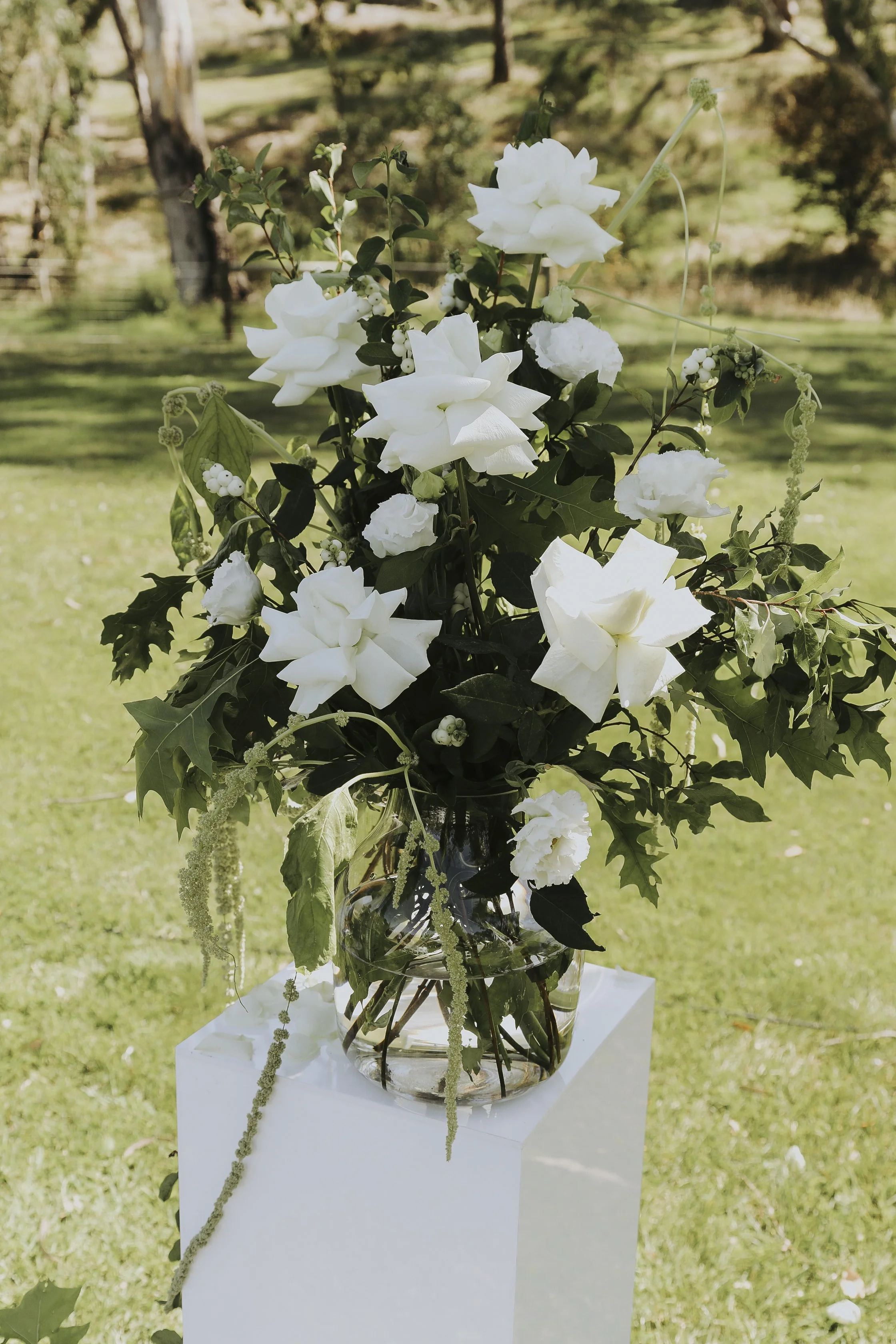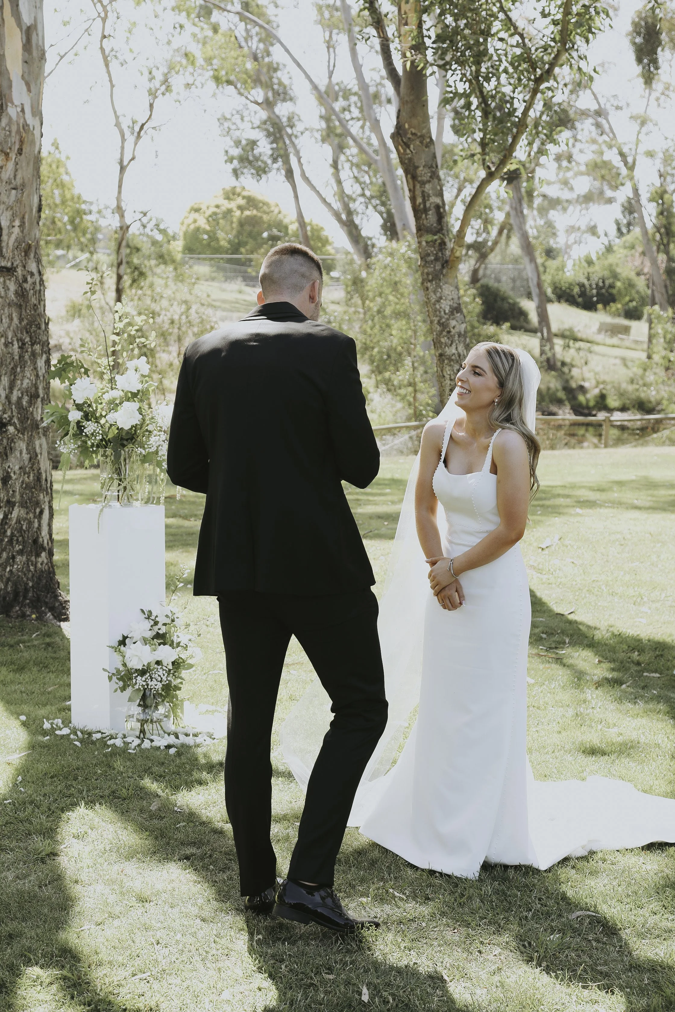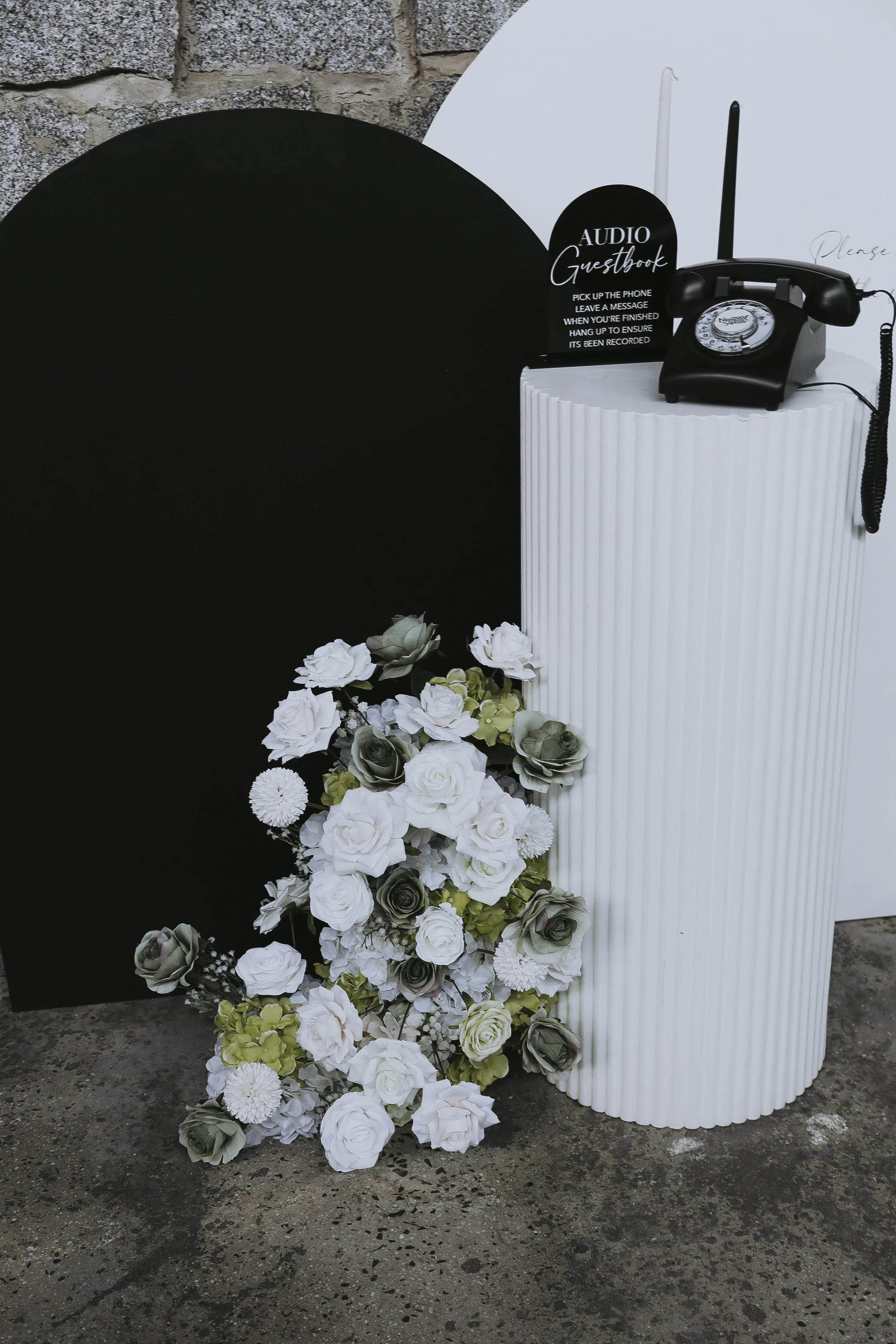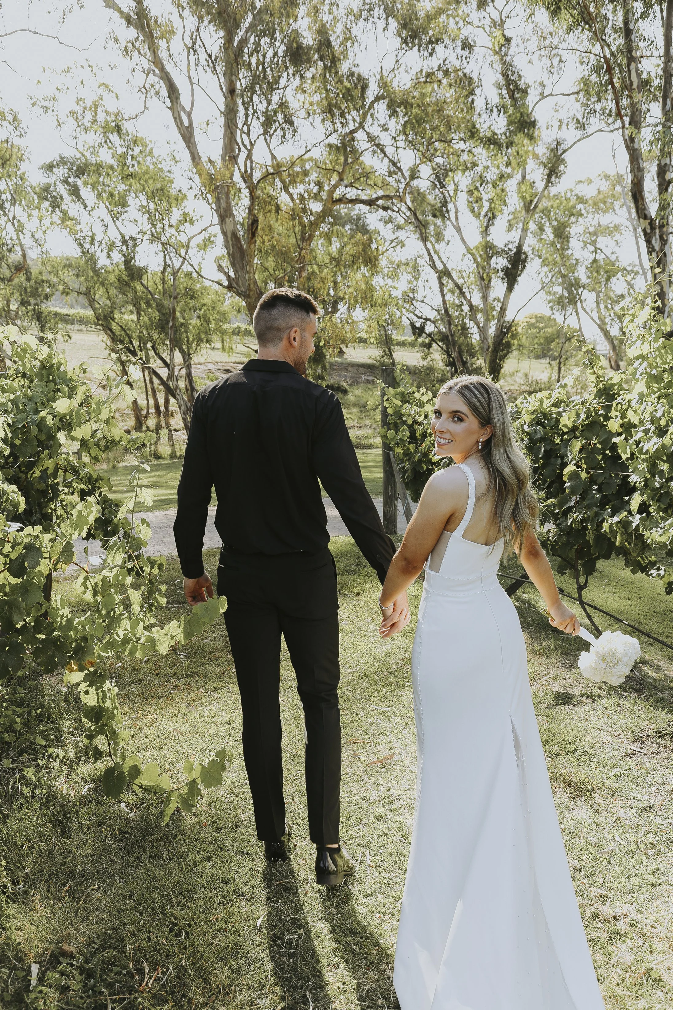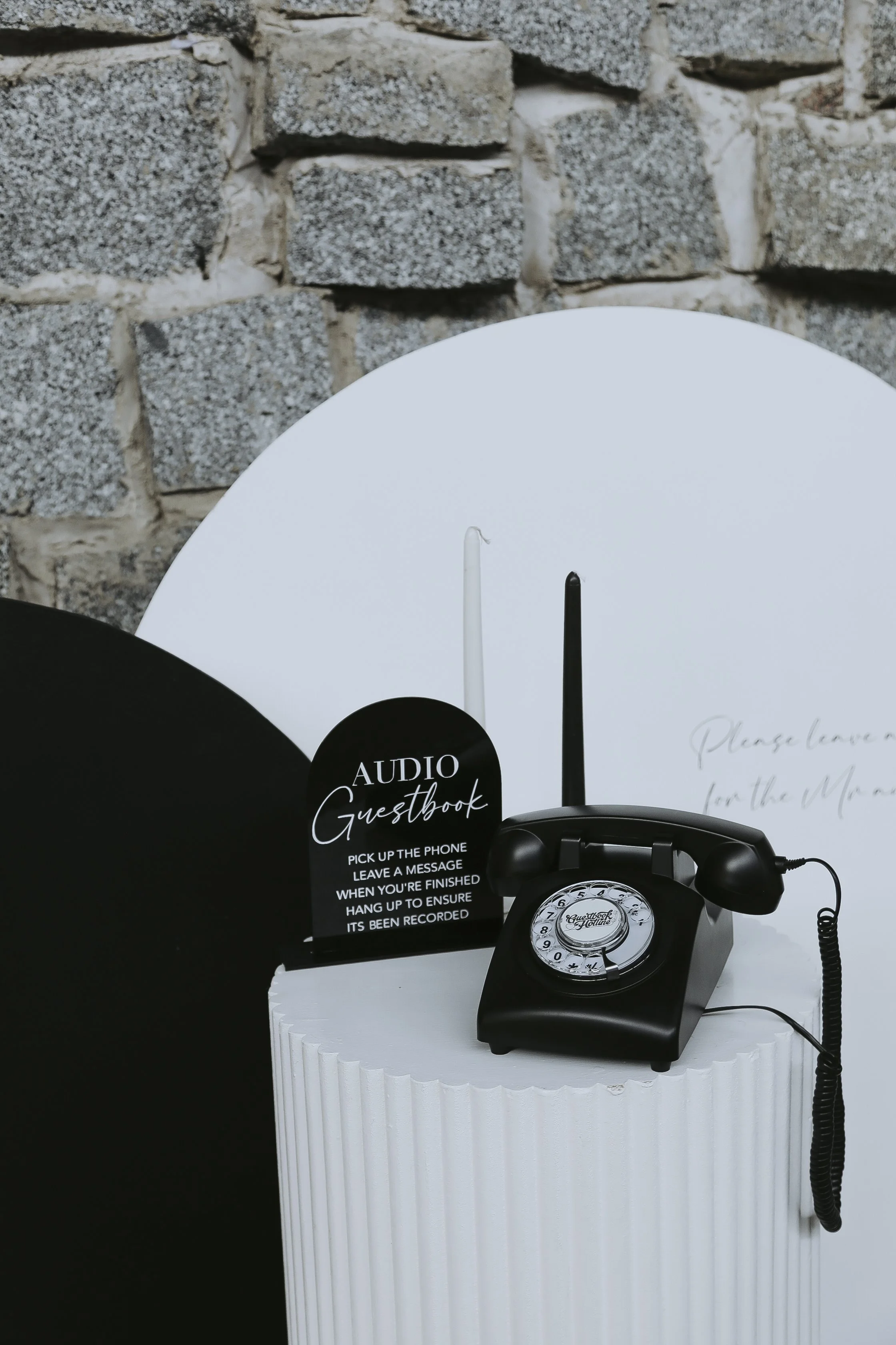 Ebony & MickEb and Mick celebrated their wedding day amidst the picturesque surroundings of Harcourt Valley Winery. It was a joy to capture every moment of their day as their photographer, ensuring their memories were beautifully captured. The hire items really complemented the venues colours and textures, we opted for an Audio Guestbook Arch Duo to hold their phone which blending seamlessly in the space. We also provided a welcome sign, stand, bar sign, and wishing well, all designed to enhance the monochrome style with a touch of green to their special day.