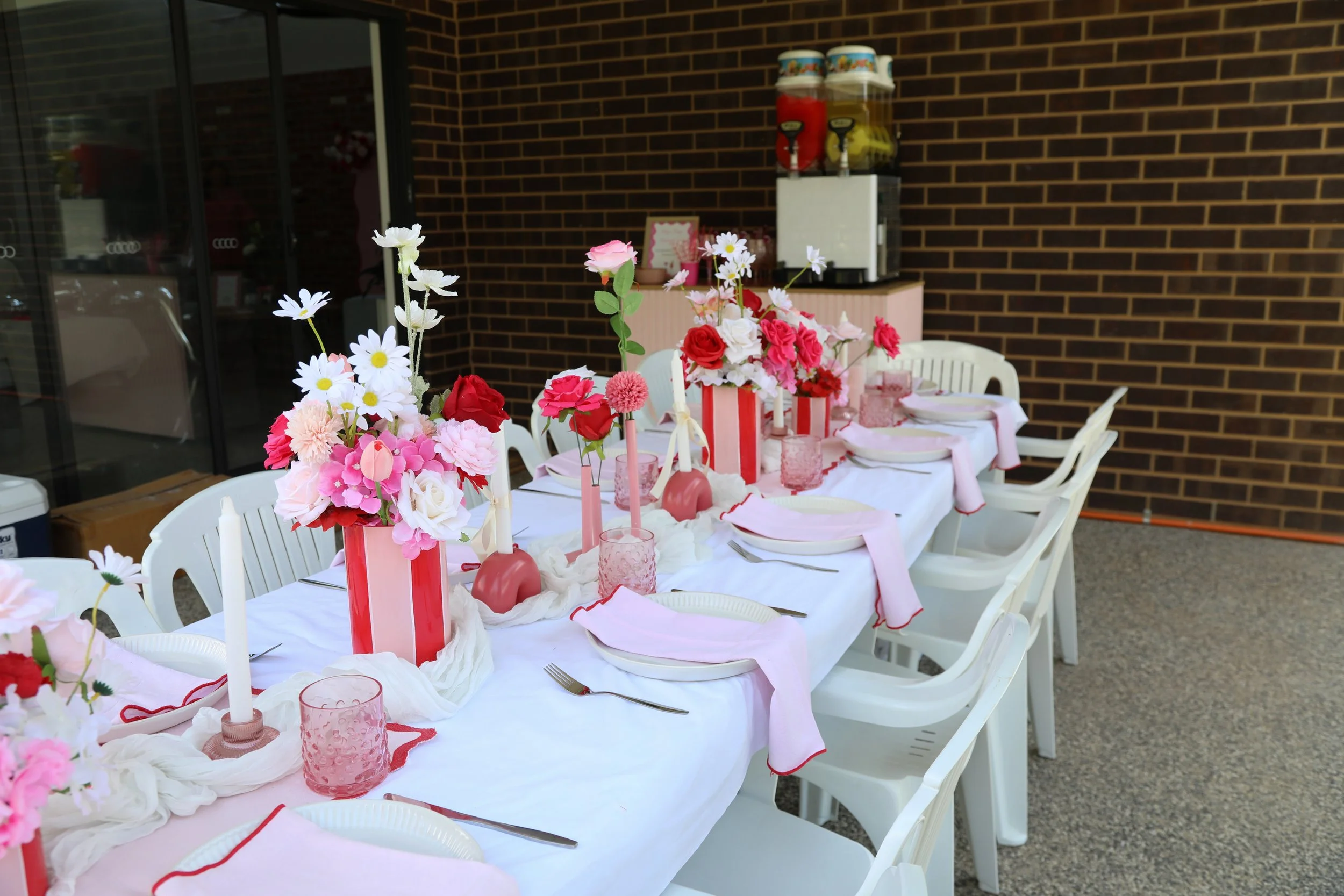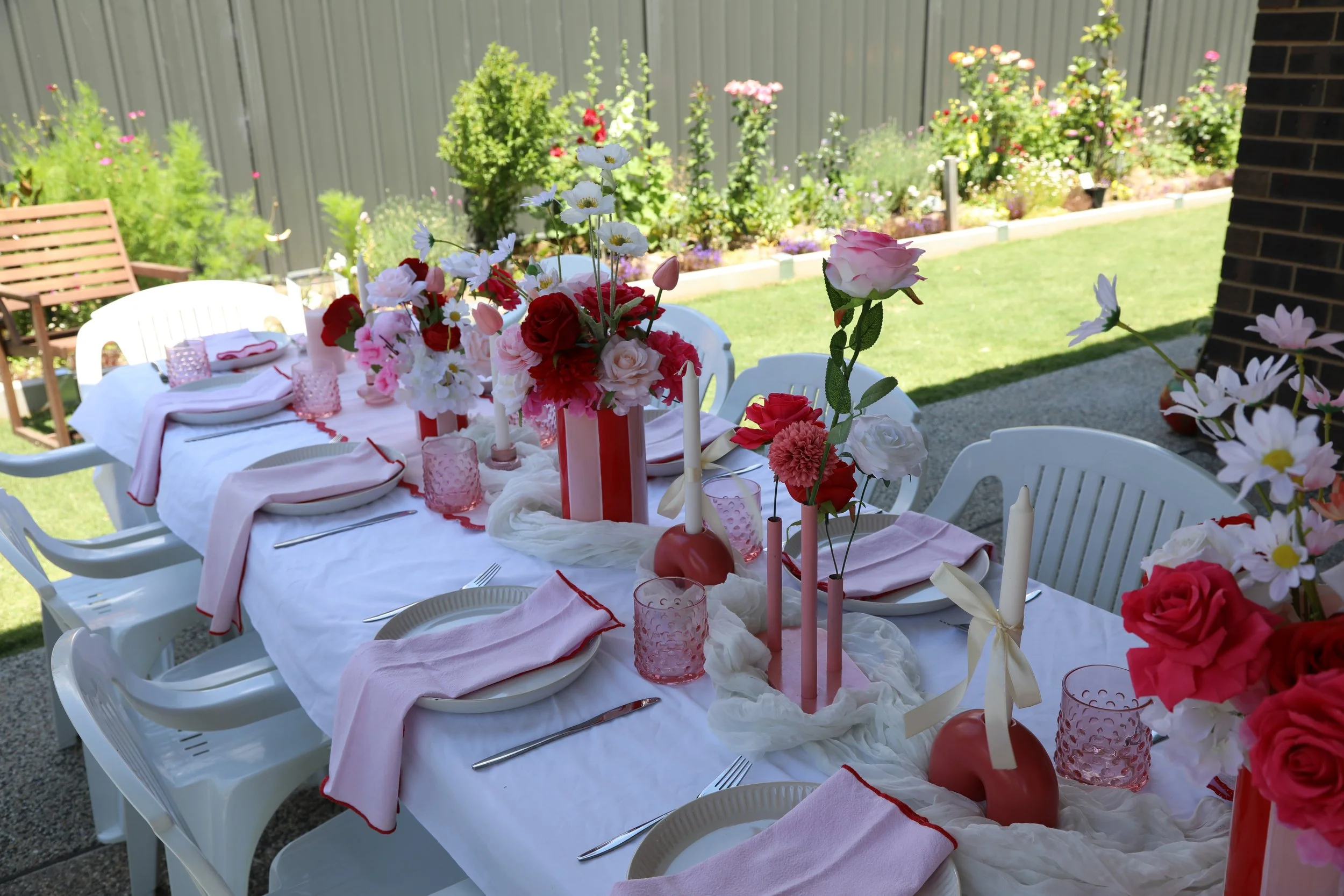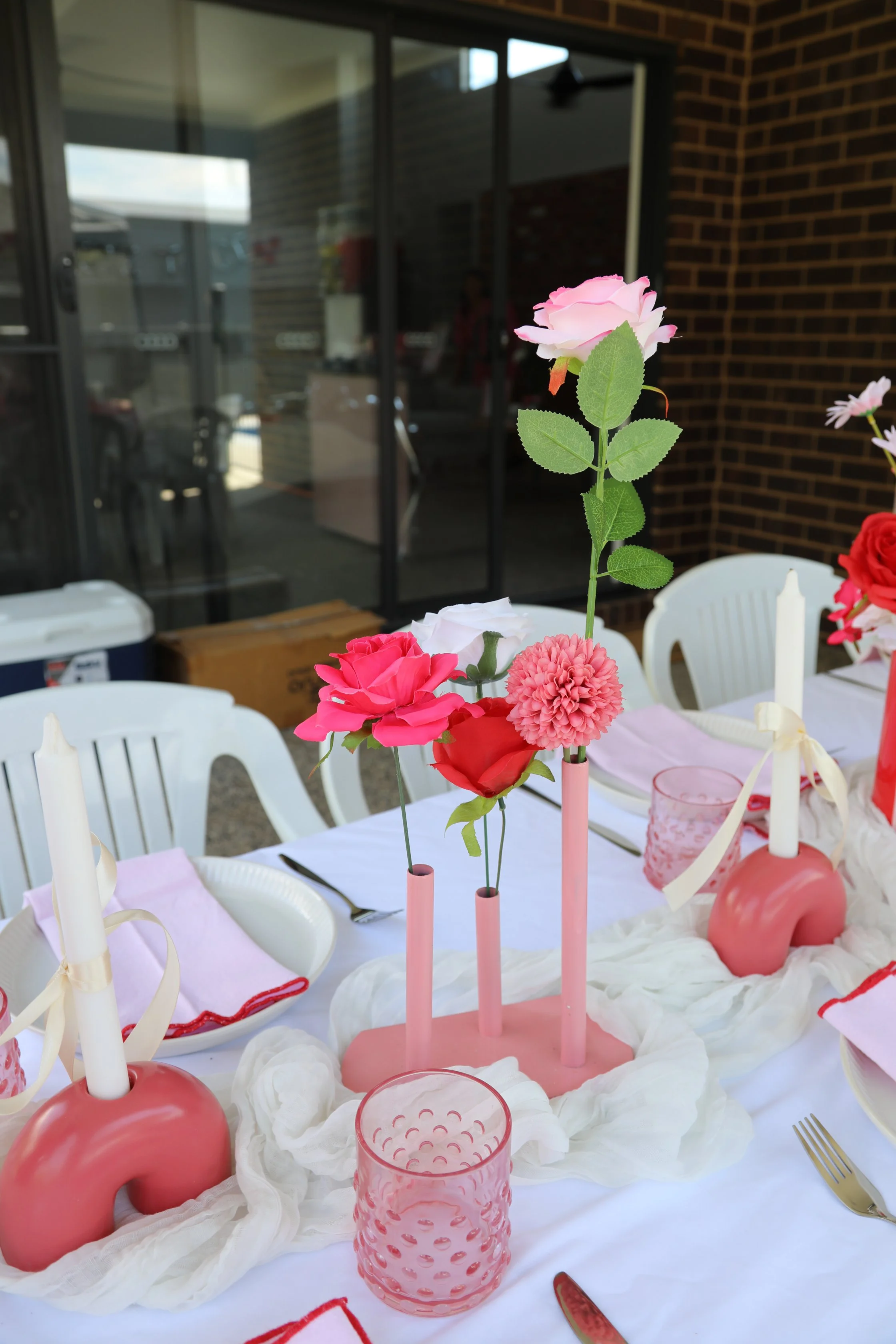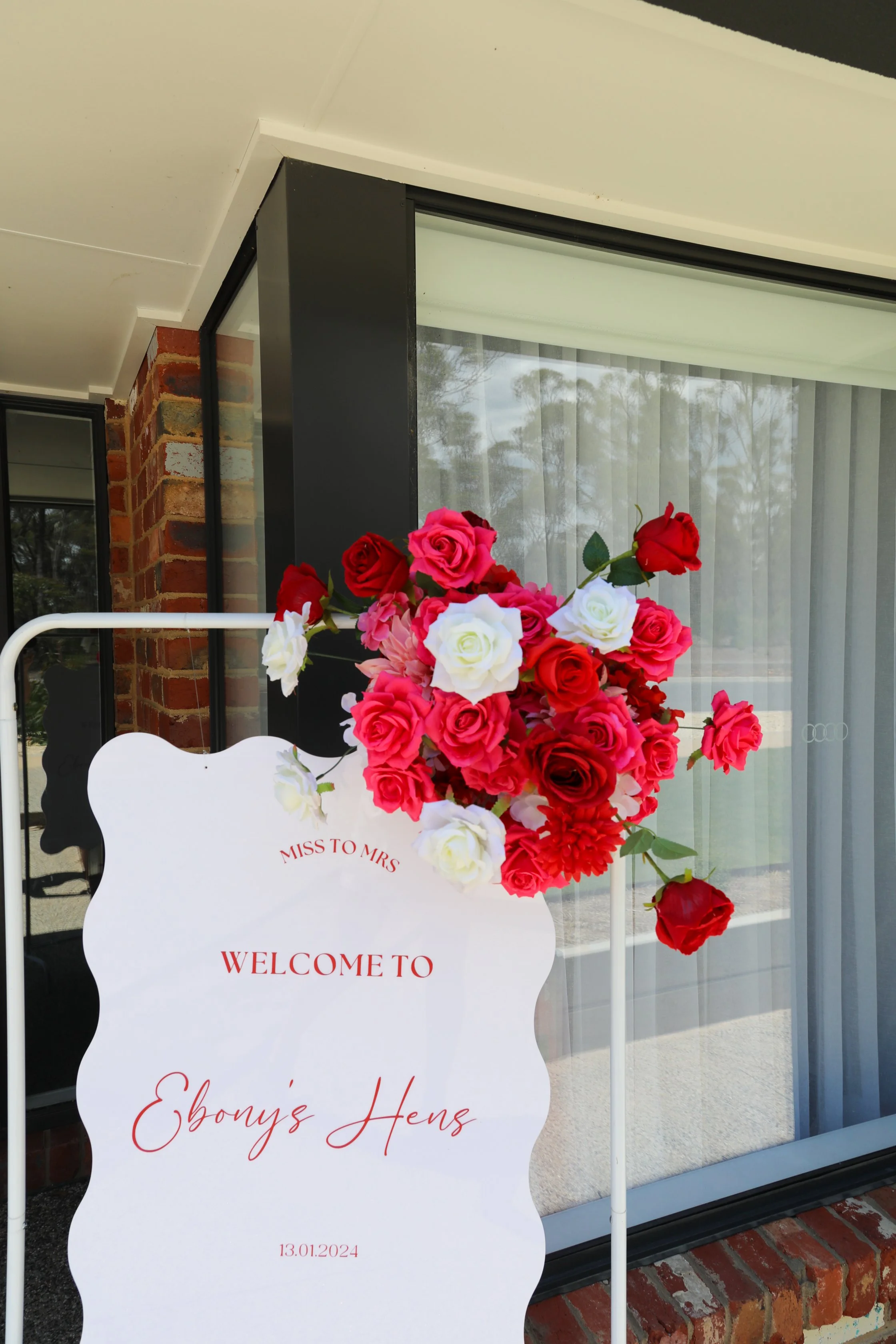 I also had the pleasure of doing Ebony’s Hens day, which was hosted at her Maid of Honour's house. We transformed the space with vibrant pink and red backdrops, welcoming signage, and an array of props, creating a lively and fun atmosphere. The highlight was the Pretty In Pink Tablescape, arranged for Ebony and her 15 closest friends and family members. Every detail, from the front door to the backyard, was carefully curated to ensure a seamless and cohesive atmosphere. It was the perfect blend of fun and elegance, making it an unforgettable bridal shower for Ebony.