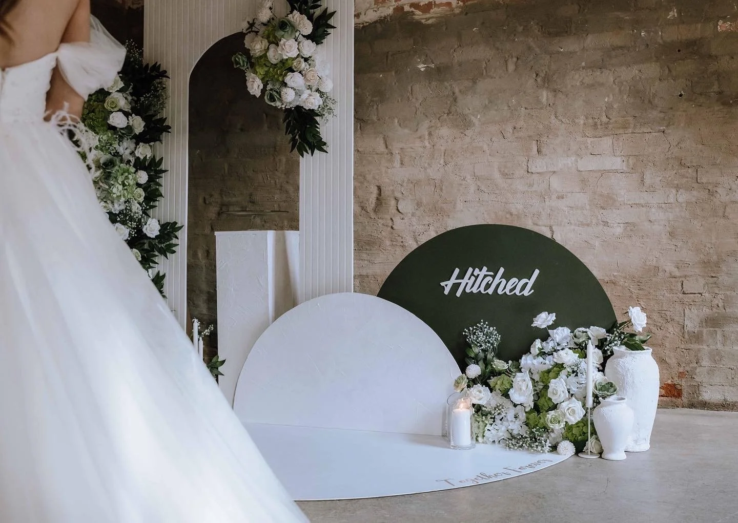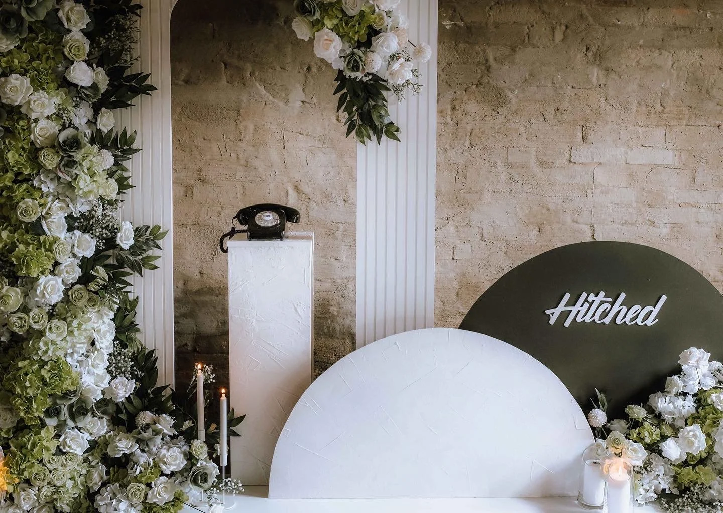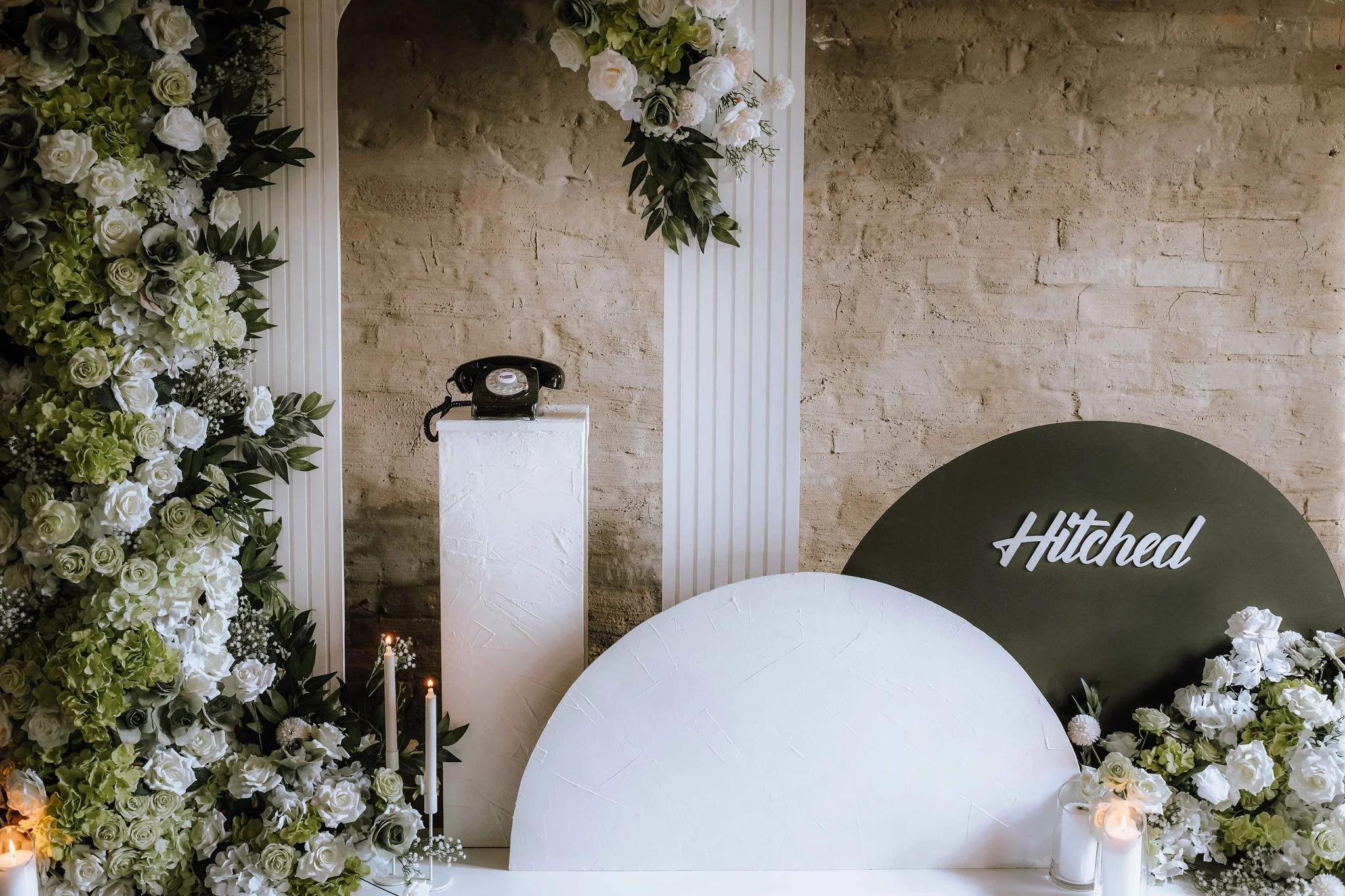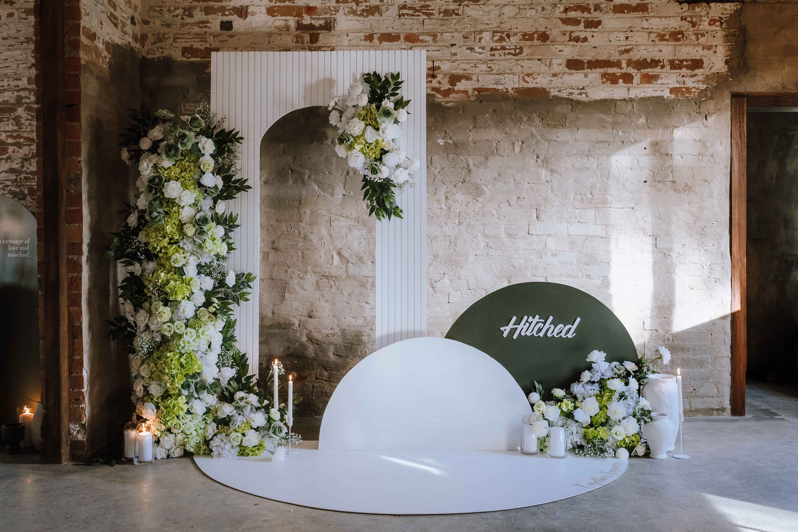 The Annual Culture Hitch Shoot was located at the gorgeous Ravenswood Homestead in 2023. I opted for a timeless white & green colour way showcasing our Silver Luxe Reception Backdrop Package, Audio Guestbook Arch Duo & a Welcome Sign Combo.