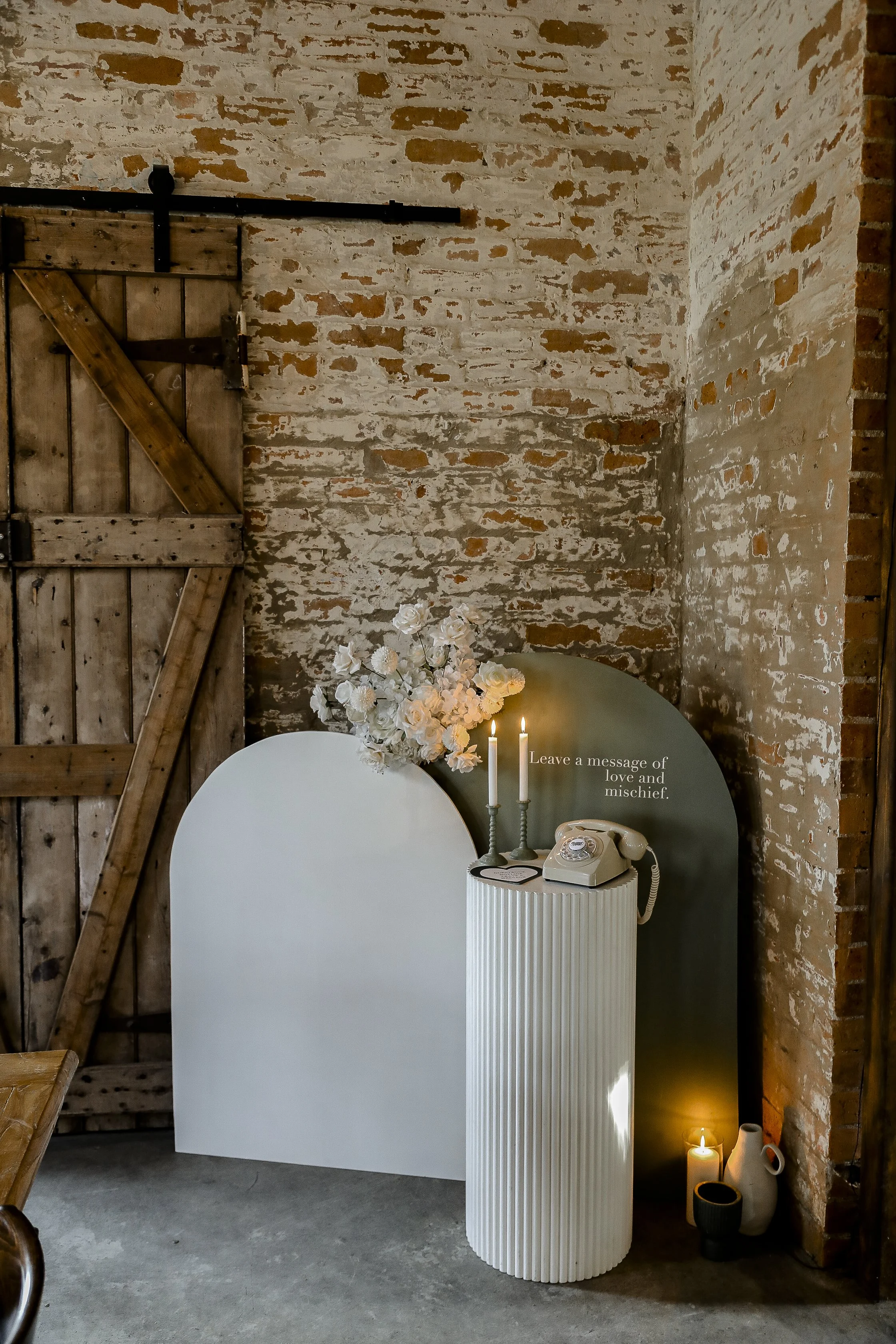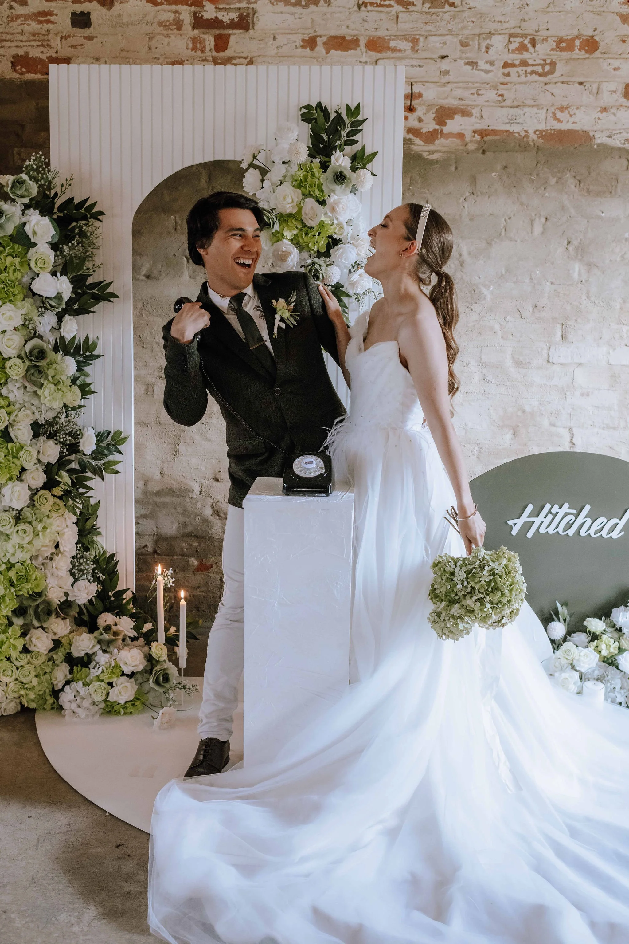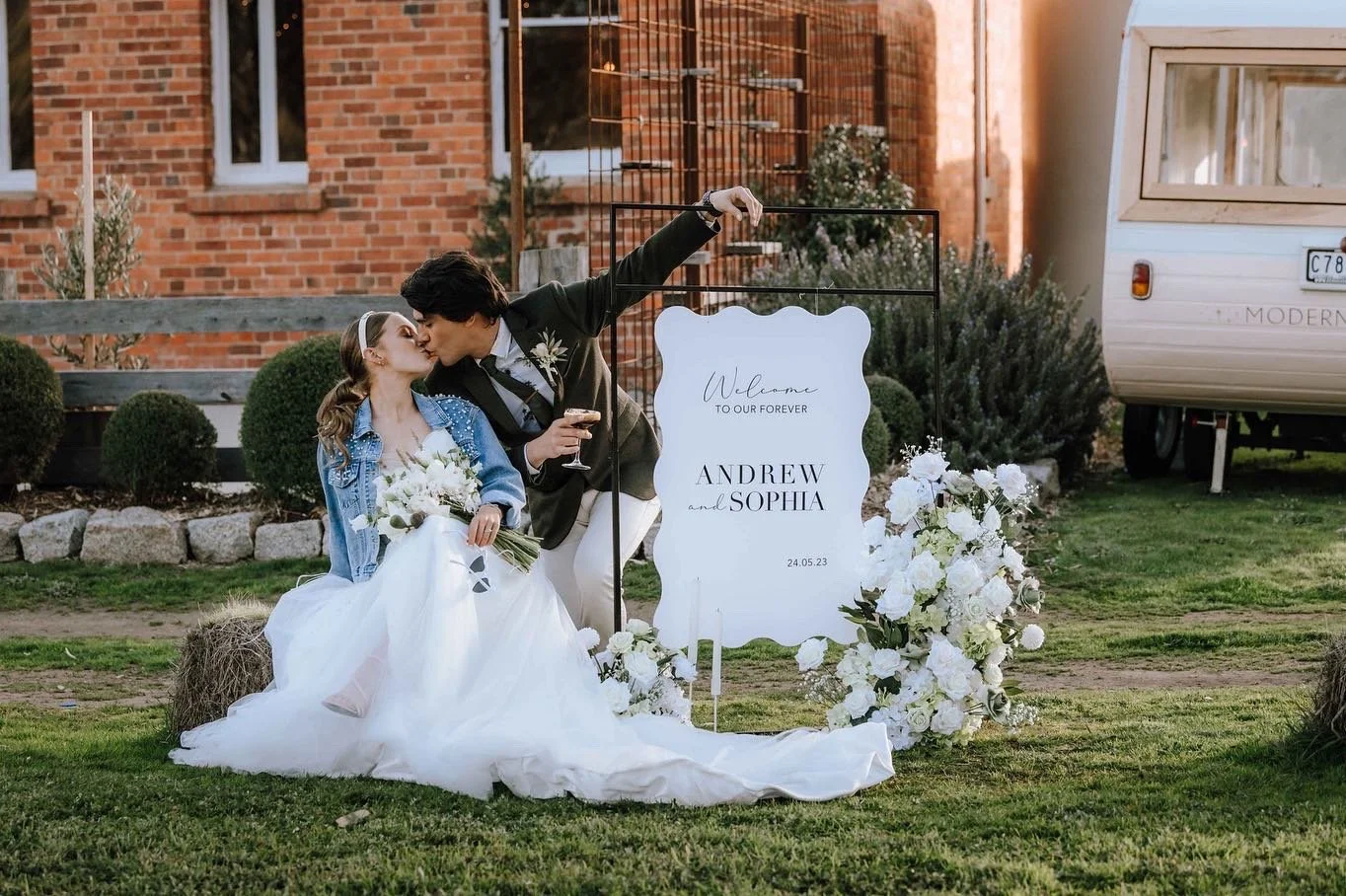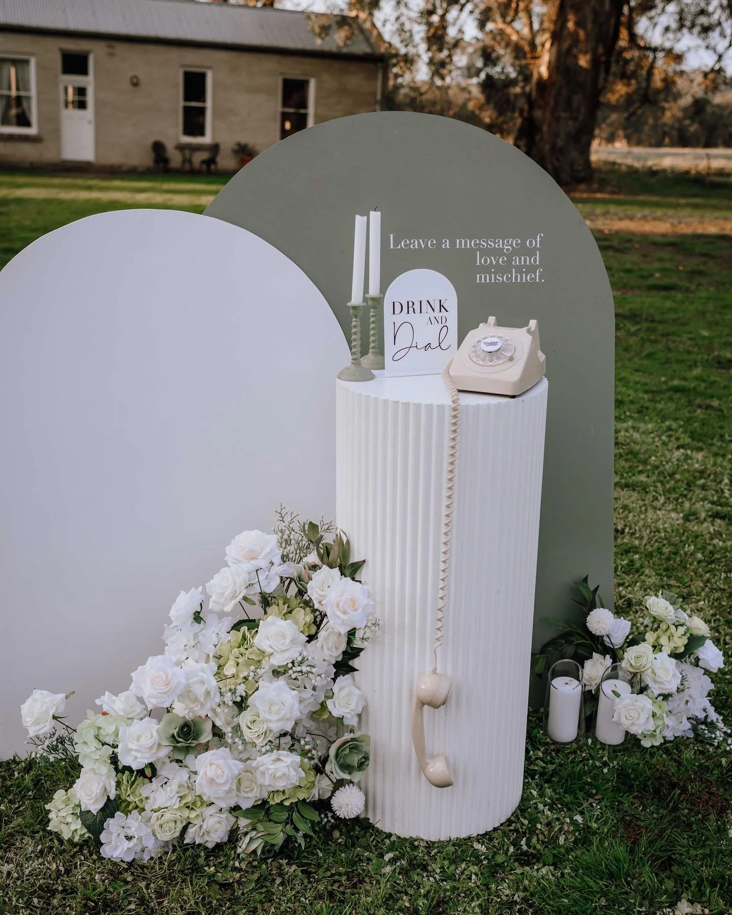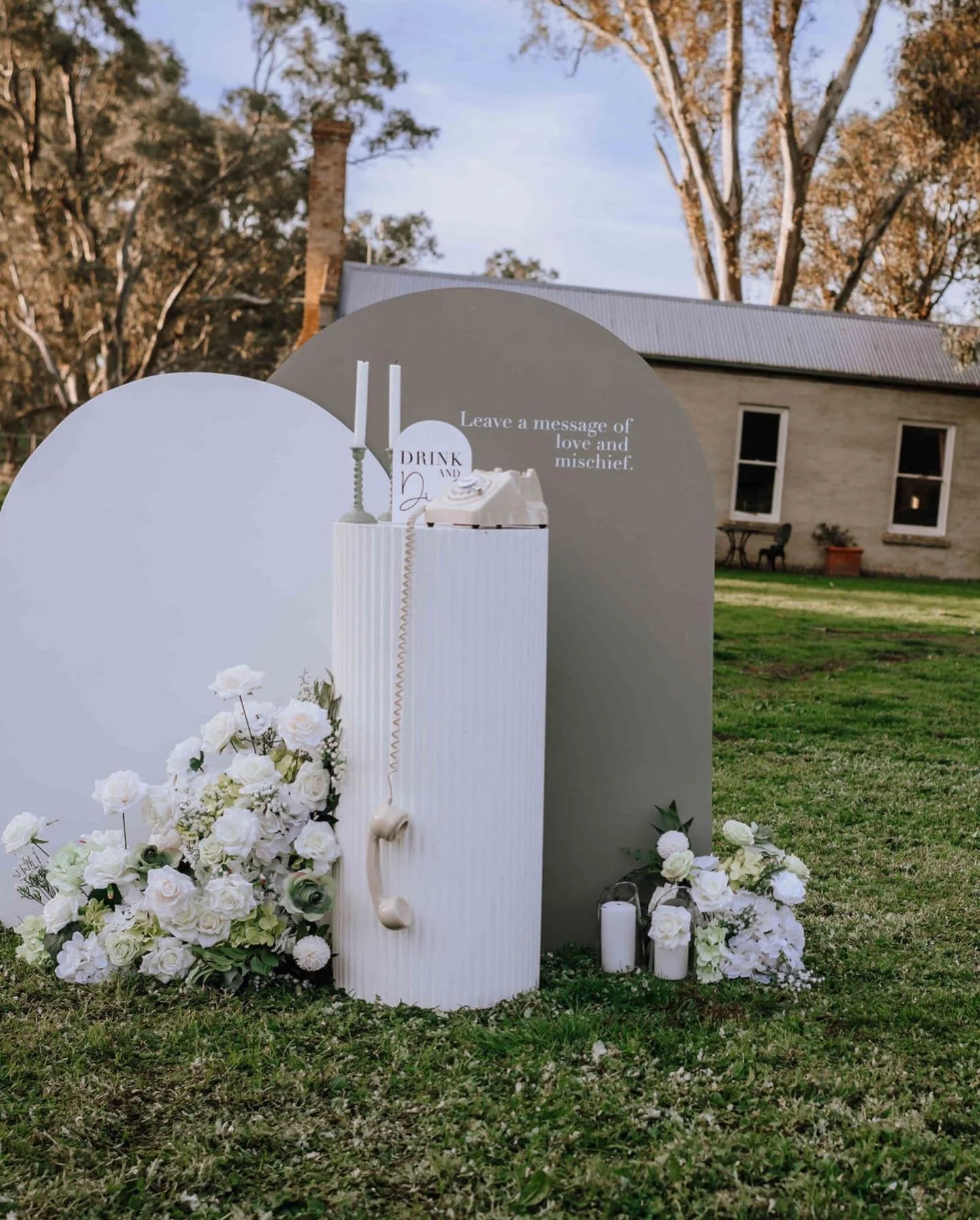 The Annual Culture Hitch Shoot was located at the gorgeous Ravenswood Homestead in 2023. I opted for a timeless white & green colour way showcasing our Silver Luxe Reception Backdrop Package, Audio Guestbook Arch Duo & a Welcome Sign Combo.