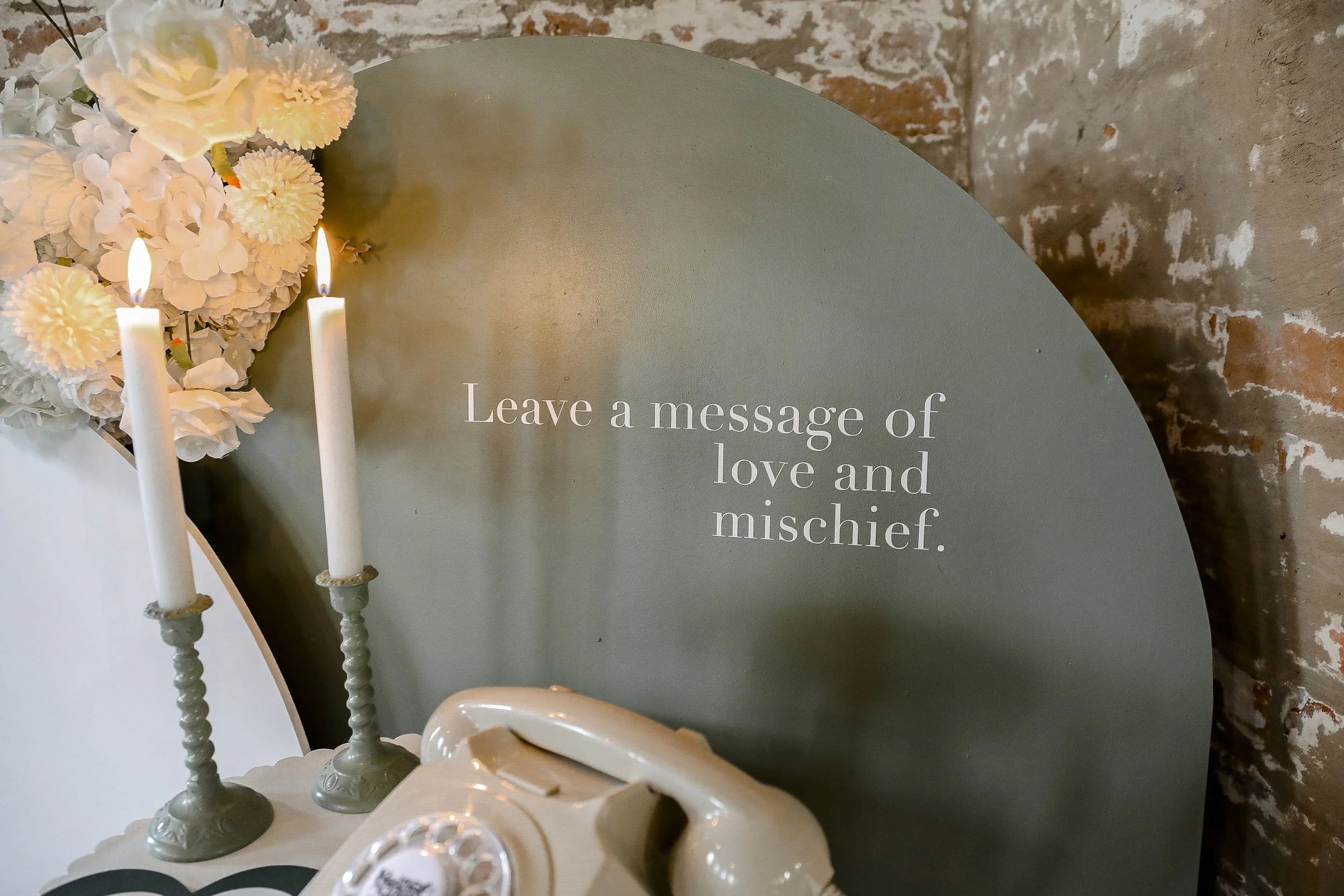 We captured our Silver Luxe Reception Backdrop Package, and added some features including our floor mats & candles which added elegance to the setting. The Audio Guestbook Arch Duo served both a practical and decorative purpose, providing a modern way to hold the phone while complementing the overall theme. Additionally, the Welcome Sign Combo tied everything together & seamlessly flowed.
