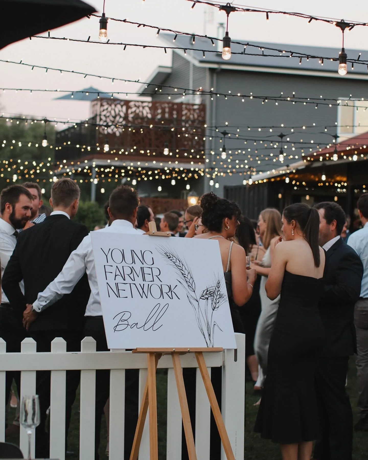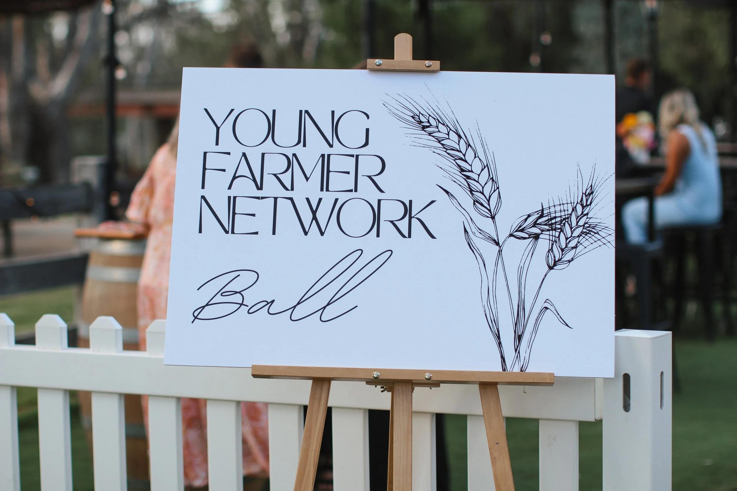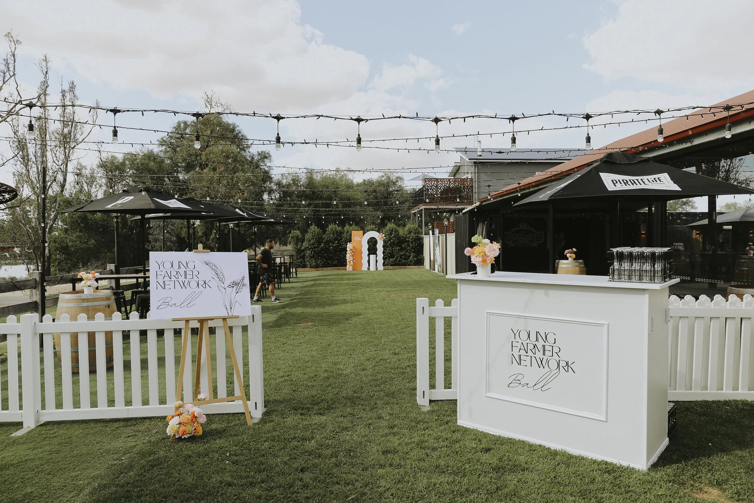 Every aspect of the event, from the custom bar and logo signage to the vibrant photo area and consistent branding, was planned to create a memorable and seamless experience for the Young Farmer Network Ball at the Bridgewater Hotel.