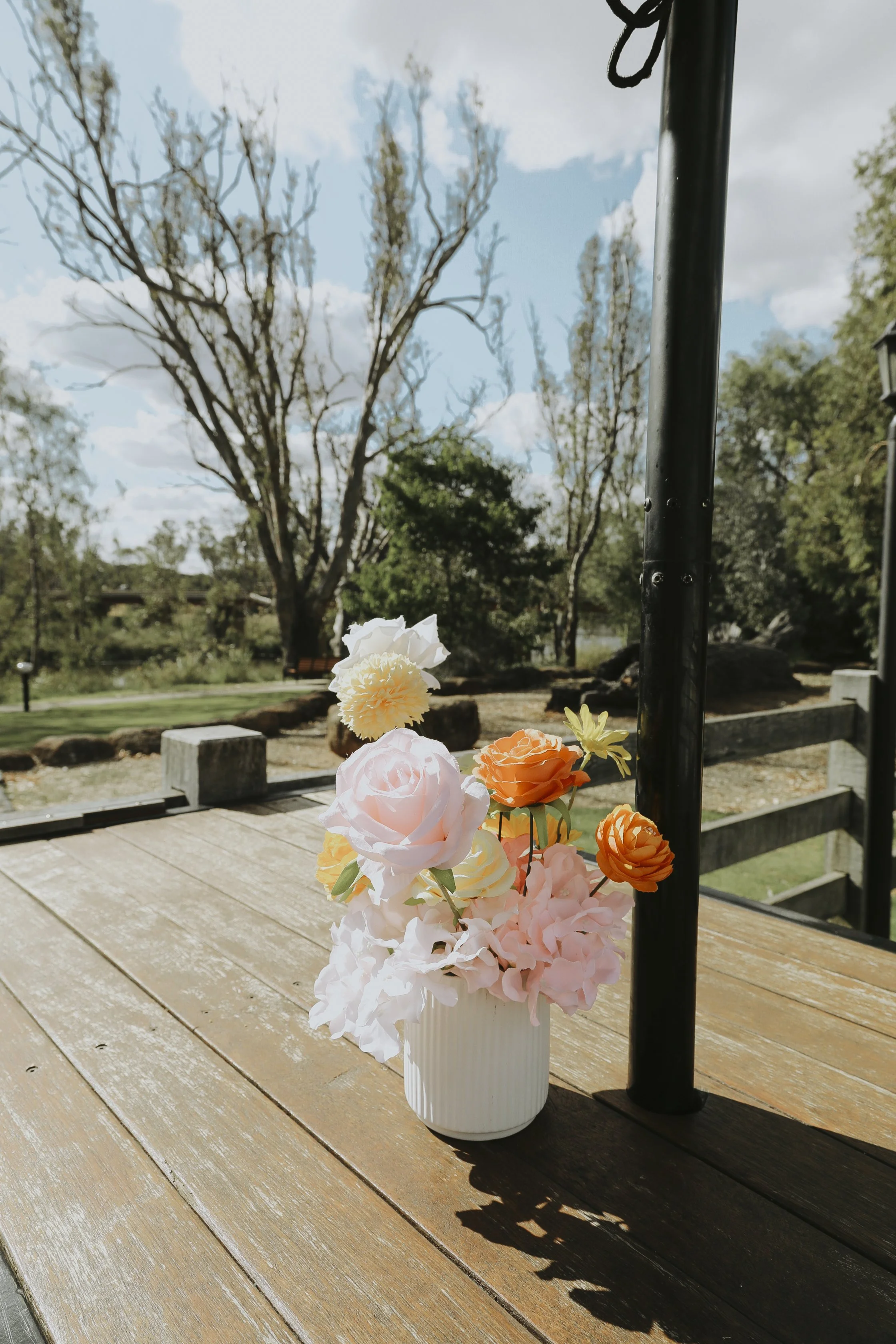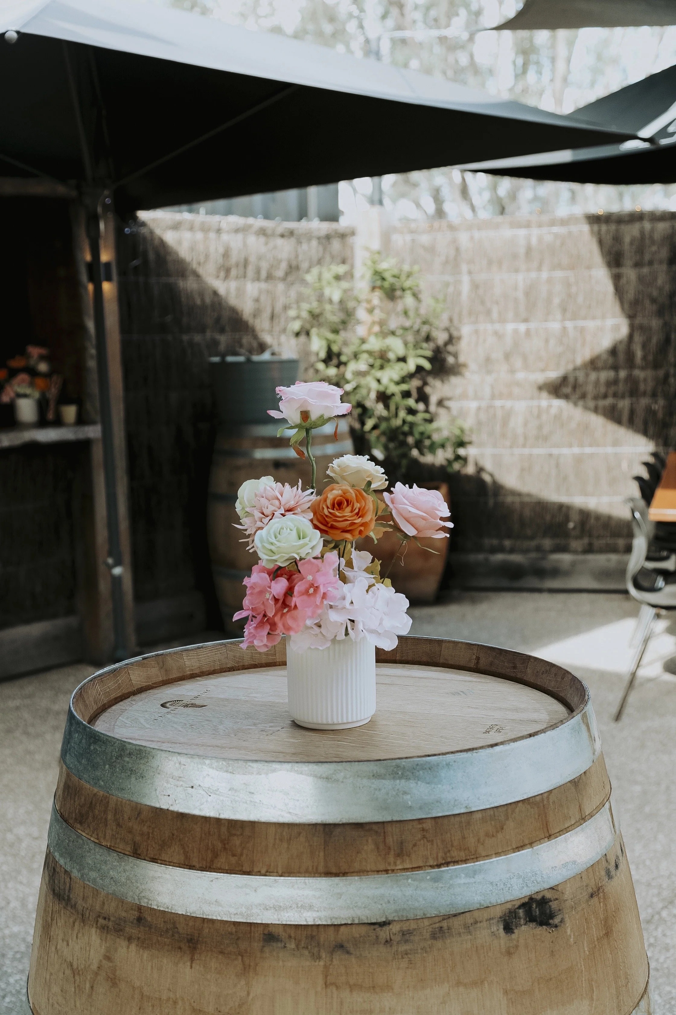We transformed the space with our Tall White Bar, which became a central hub for serving champagne. The bar was complete with a personalised logo sign on the front and table vase arrangements not only on the bar but also scattered throughout the venue, adding bursts of colour to the night.